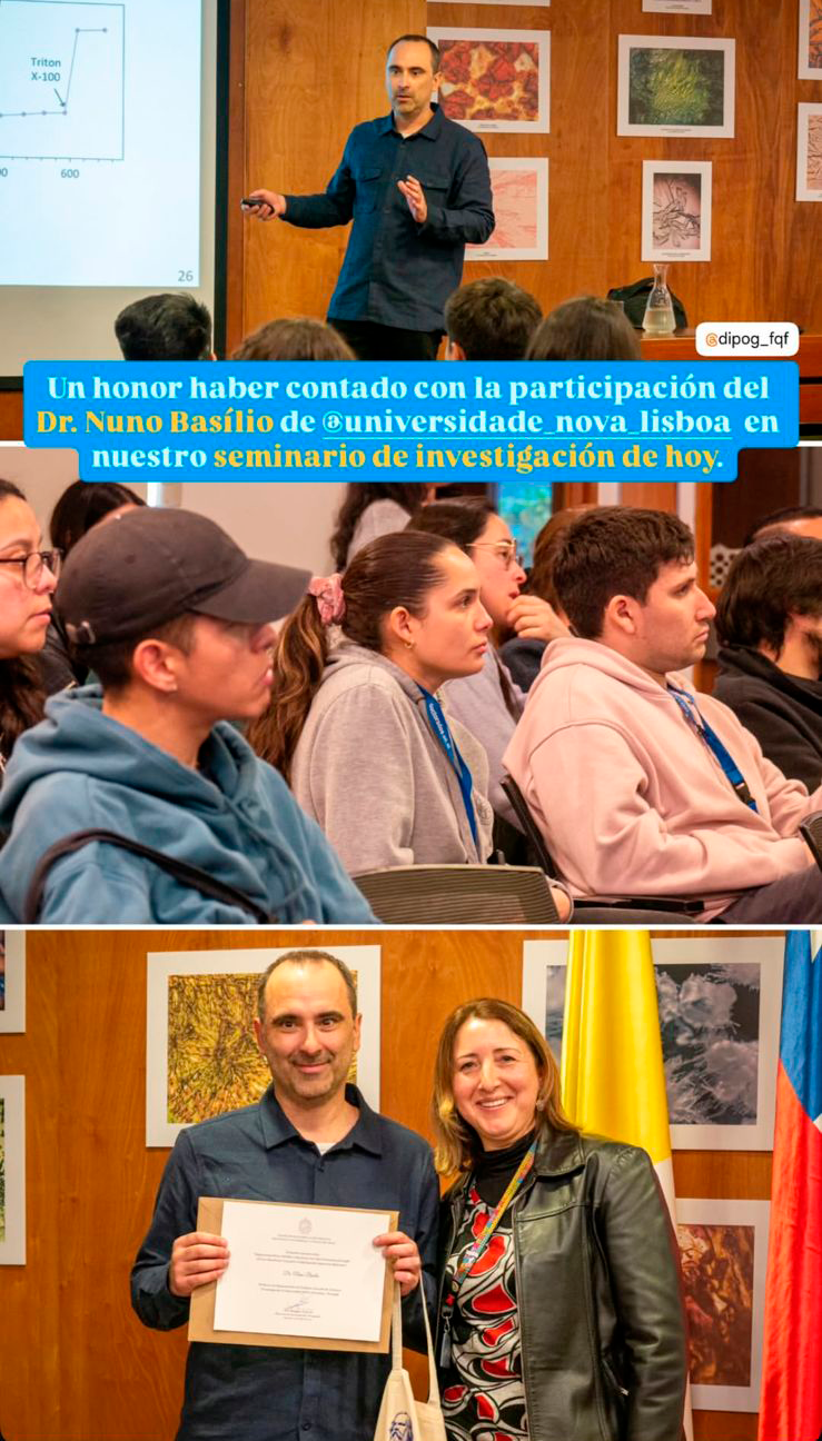 Participamos en el seminario internacional dictado por el Prof. Nuno Basilio titulado “Engineering Water-Soluble Calixarenes for Optical Sensing and Light-Driven Membrane Transport of Biologically Important Molecules”. La actividad se efectúo el día 29 de junio, 2025 en la Facultad de Química y de Farmacia UC.
